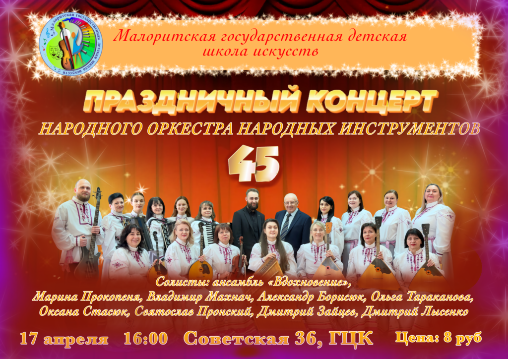17 апреля праздничный концерт народного оркестра народных инструментов